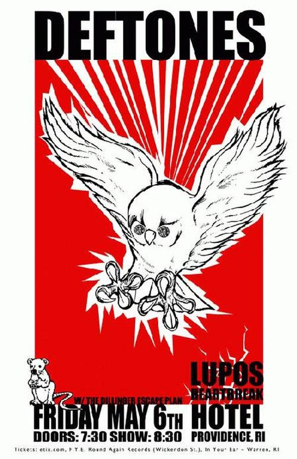 Concert poster for The Deftones at Lupo's in Providence, RI in 2011. 11 x 17 on card stock. Art by Mark Serlo.